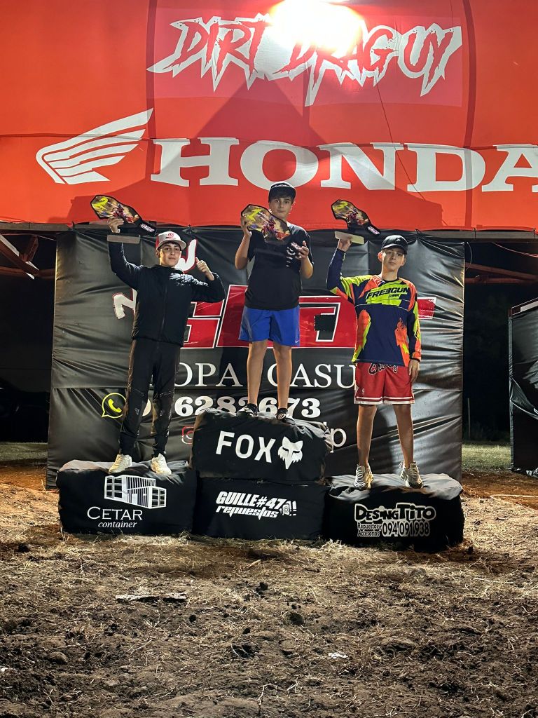 DR JUNIOR (85cc): 1. #513 Joaquín Curbelo, #156 Matías Villaveiran y 3. #28 Lucas Yandel Babace.