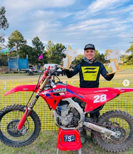 Como todo recordamos, estuvo presente en la final del campeonato uruguayo de Motocross 2023 en Complejo Lakes, el 4 y 5 de noviembre, donde se destacó. Ganó tanto en MX2A como en MX1. Lo hizo de forma perfecta, quedándose con las cuatro mangas que corrió a bordo de la HONDA CRF 250cc 4T del equipo de Lain Racing Setup.