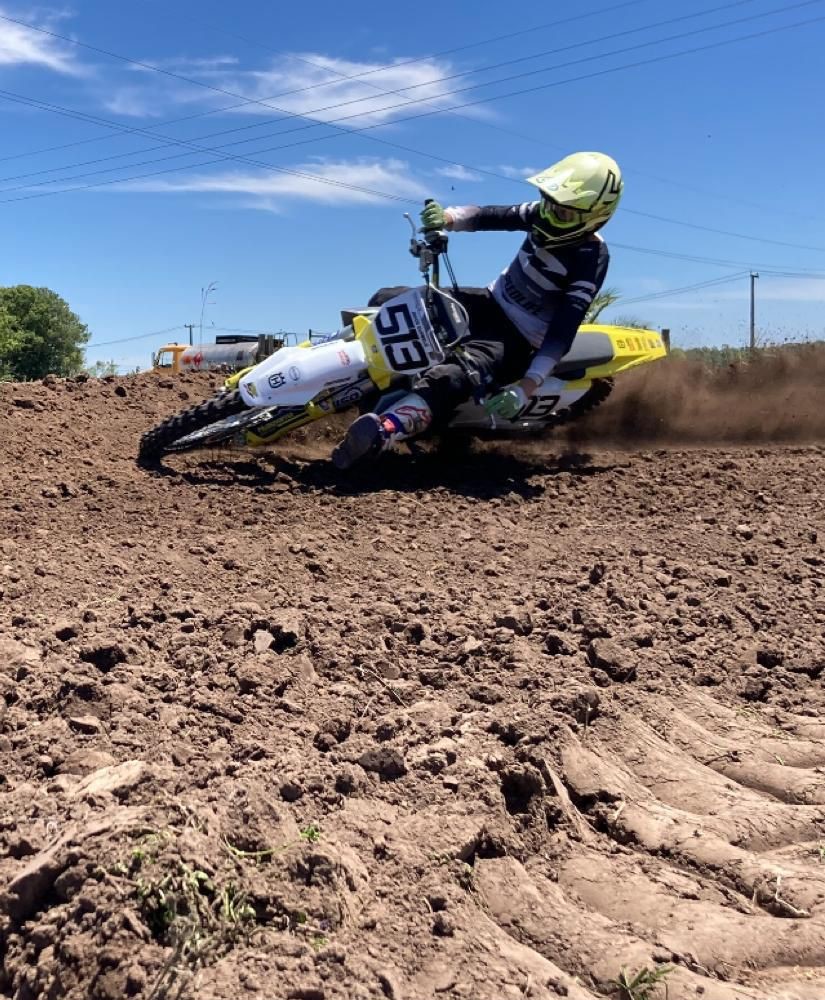 El campeón de 125cc 2T en el nacional de Velocidad en Tierra, el maragato de AA Graphics, #215 Lucas Yambei, participó de la final del MX en Complejo Lakes y le gustó mucho la categoría, por lo que va comenzar el año 2024 en Colonia Miguelete. Depende de cómo le vaya tomará la decisión si lo hace completo o no.
