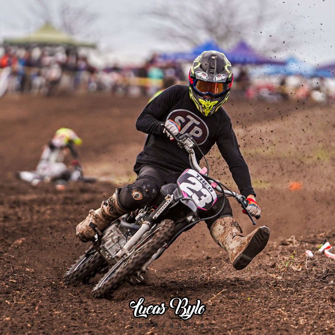 Últimamente, los días post carrera son con dolores porque vengo de dos fechas con caídas que me comprometieron un poco las carreras. En la primera manga de la primera fecha del Regional Sureste en Dolores, tuve un enganche con otro piloto donde la moto me golpeó la espalda, no me dejaba respirar y me saqué el hombro de lugar. Todavía sigo en recuperación con fisioterapia para llegar al 100 por ciento a la próxima fecha que corra.