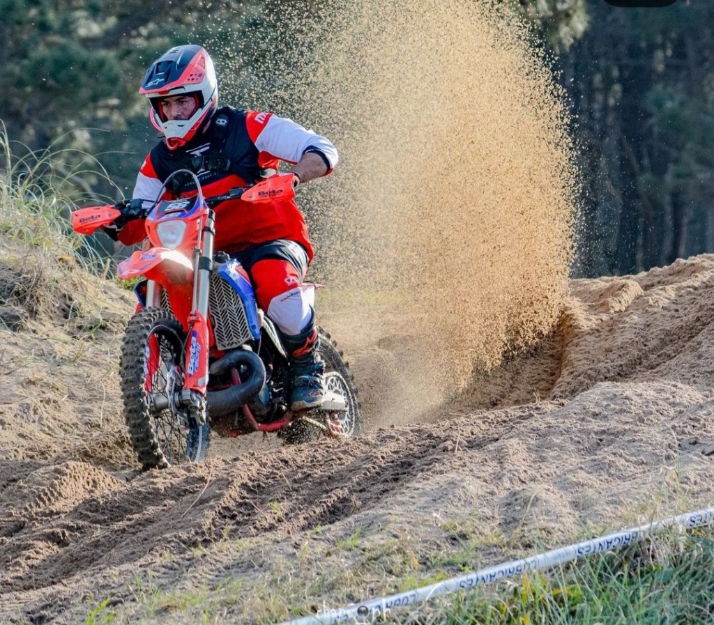 Ramiro Reinhold, también en Enduro Kids, hizo una carrera prolija, pareja y con buen ritmo que lo ubicó en el tercer puesto luego de largar 10mo, en una pista de arena muy cansadora con muchos pozos. Sigue en la segunda ubicación del certamen.