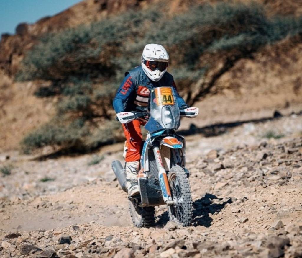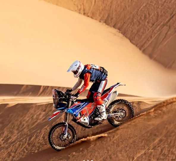 Me levanté al día siguiente, arreglé la moto, esperé a otro competidor que me hizo puente y seguí. Después ya con poco embrague en en las dunas muy blandas, la moto se me quedó vuelta sin batería y no pude seguir sin agua, así que bueno, eso fue uno de los momentos más frustrantes del Dakar.