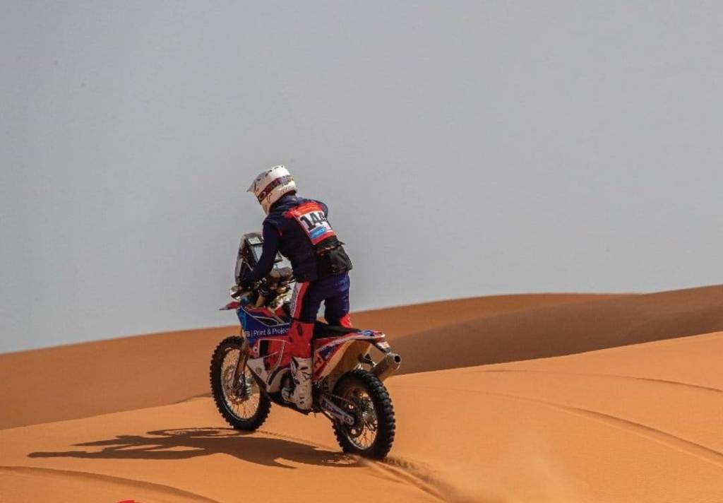 Tuve problemas con el embriague y la batería de la moto y me quedé una noche en las dunas durmiendo. La gente de la organización me preguntó si quería que el helicóptero me viniera a buscar y les dije: «ni loco», acá voy a seguir adelante. Me tiré al lado de la moto, con un sobre de dormir que me dio la organización y dormí como pude.