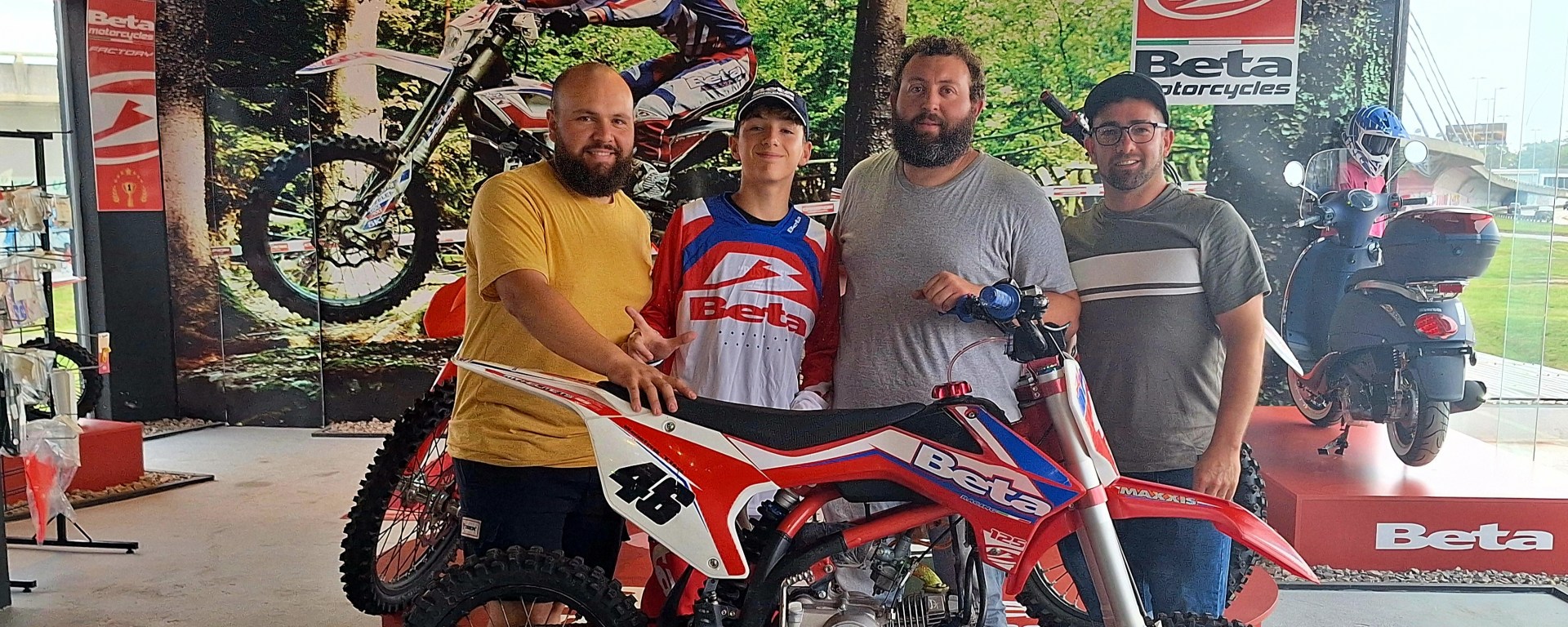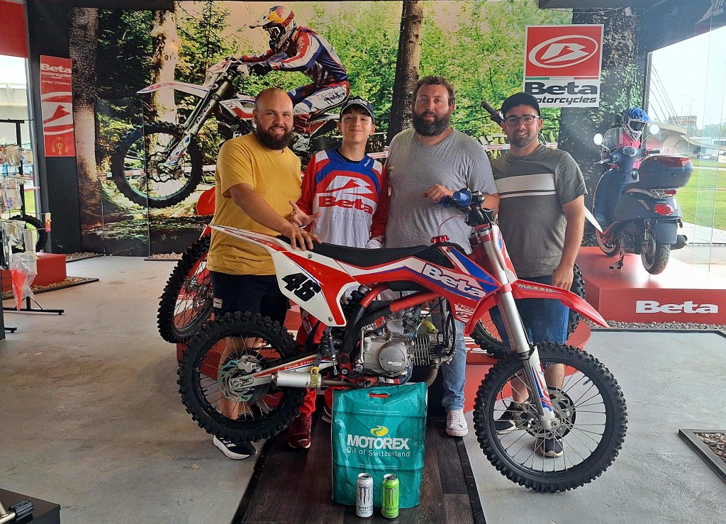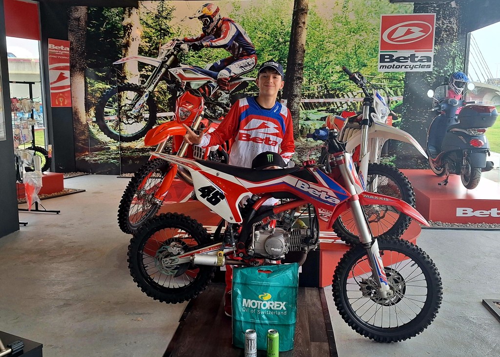 A tan solo 10 días de la consagración, él junto a su padre y sus mecánicos visitaron el local de BETA Motor Uruguay, donde fueron recibido por el representante de la marca en Uruguay, Sr. Marcelo Falco.