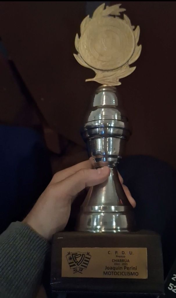 El ganador del Premio Charrúa 2024-2025 en Motociclismo fue Joaquín Perini. De esta manera, se marca la historia, ya que nunca antes un piloto de los Regionales de Mecánica Nacional de Velocidad en Tierra había logrado alzarse con uno de ellos.