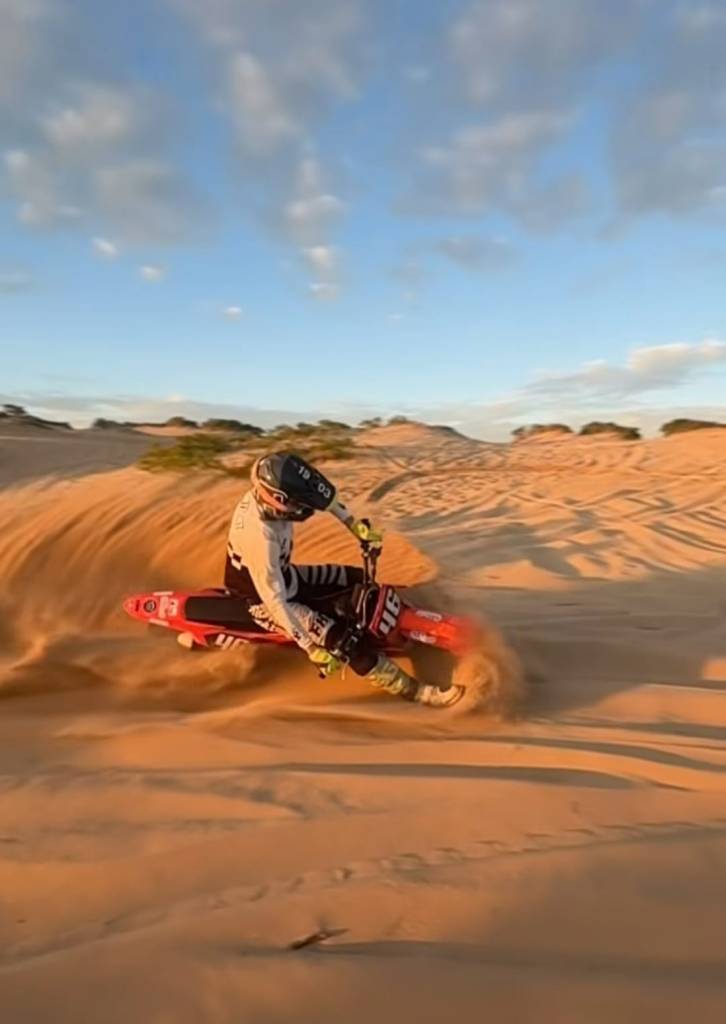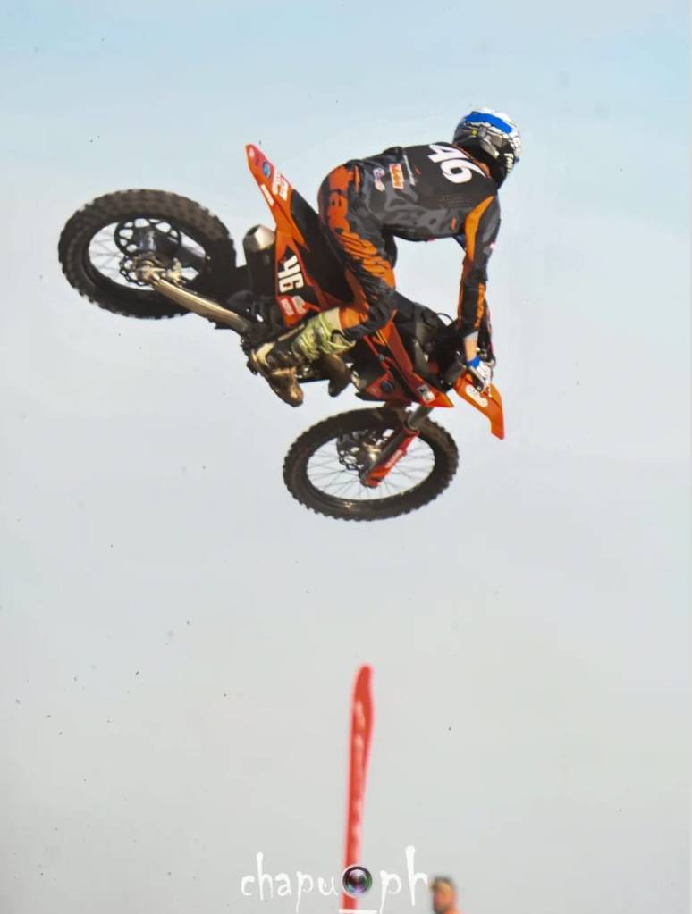 Para este evento se requiere una preparación mayor que para una simple carrera por el hecho de que las mangas son más largas y en pistas que se rompen mucho con el paso de 40 motos. Para eso, Alfonso ha estado entrenando en la arena con mangas de 30 minutos en un piso muy roto para estar más adaptado a lo que va vivir en esos dos días en Bariloche con su habitual frío seco.