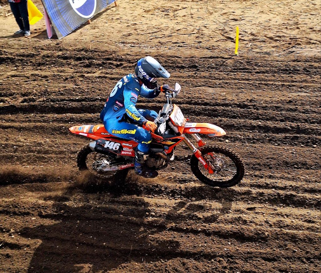 El viernes fue el primer día del evento, donde pudo conocer y caminar la pista para conocer de primera mano todos los saltos y el trazado. Además de eso, se llevaron a cabo las verificaciones administrativas donde presentó la Licencia FIM y su KTM 250cc 4T 2025 pasó sin problemas las verificaciones técnicas de peso y sonido. Como es costumbre, también se revisó el casco 6D, que tenía que tener la nueva homologación de la FIM, la pechera y las botas, que cumplieron a la perfección con todas las exigencias. Para cerrar la actividad en el circuito, probó largadas en el picadero; lugar específicamente diseñado para probar las motos fuera de la pista.