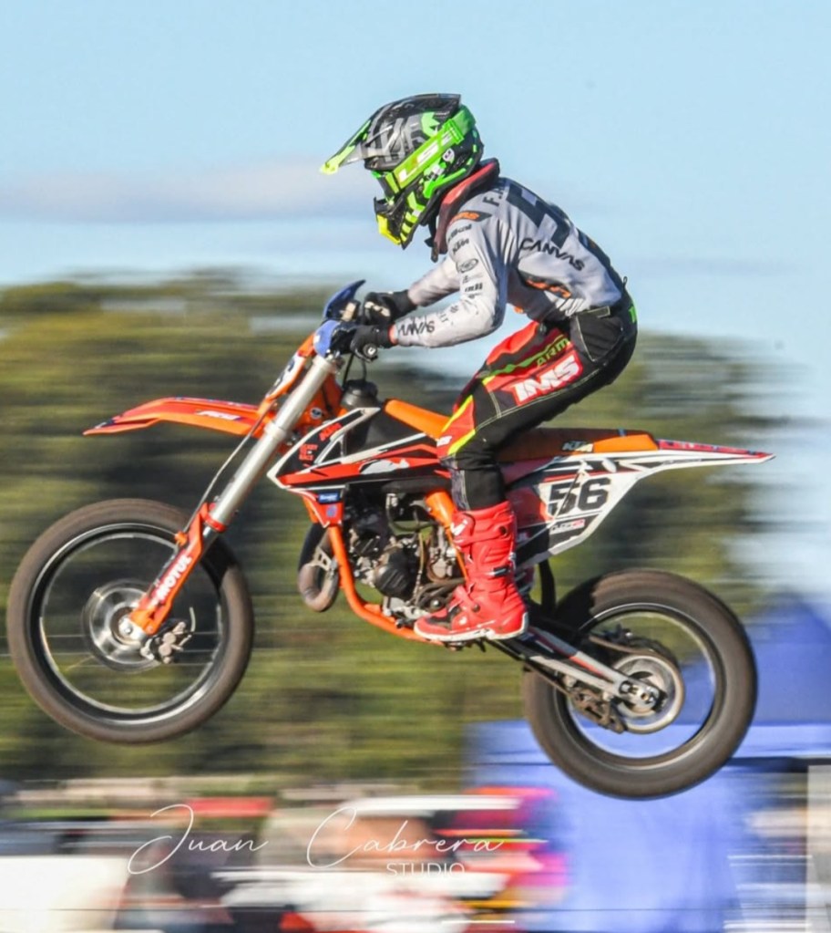 En esta oportunidad, la celeste estuvo representada por los pilotos AA Graphics, #43 Fausto Mendy en 65cc y #561 Filipo Anselmi en MXJR. Ambos vienen demostrando un gran nivel y fueron los ganadores de sus respectivas categorías en la segunda fecha del nacional de Motocross en Colonia Miguelete. Una noticia que se dio en la semana previa y es bien importante, es que de esta fecha para adelante, la organización del campeonato junto con la CBM resolvieron que la inscripción de todos los pilotos en 50cc, 65cc y MXJR sea gratis en cada una de las carreras del certamen.